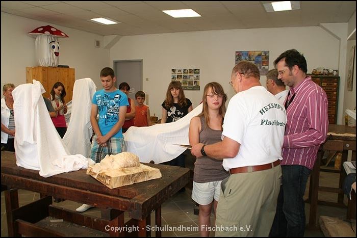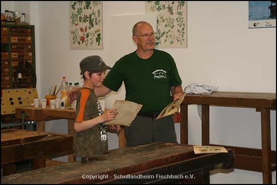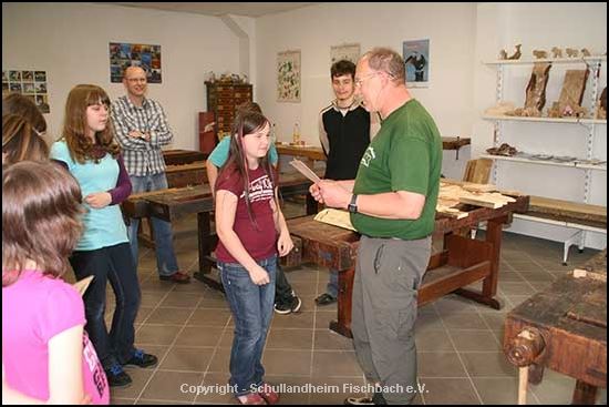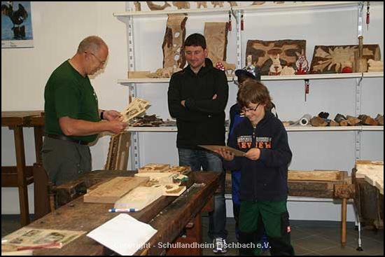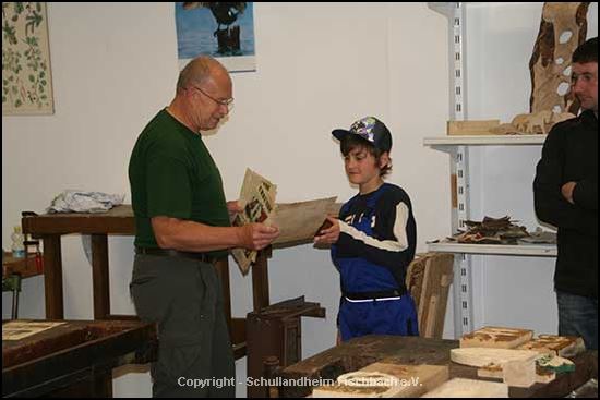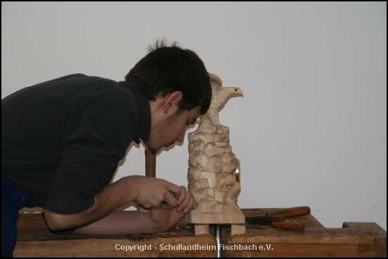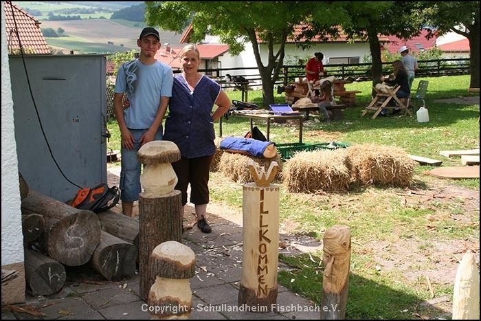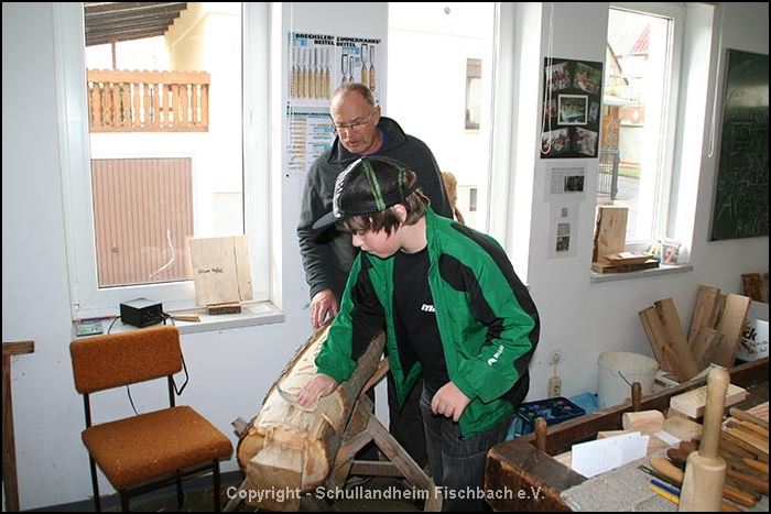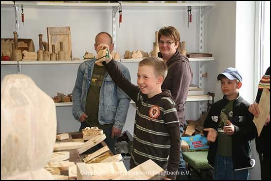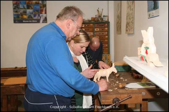 Anliegen der Schnitzkurse, ob für Erwachsene oder Kinder ist, das traditionelle Rhöner Handwerk zu fördern und zu vermitteln sowie das Interesse für Alt und Jung zu wecken, da sind sich Herr Hel vom Schullandheim Fischbach und Frau Genschow, Holzbildhauermeisterin aus Klings einig.