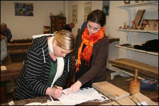 Am 8. Oktober fand im Kreativraum der "Schule im Grünen" Fischbach die 2. Auflage eines Erwachsenenkurses im Holzbildhauerhandwerk statt. 9 Teilnehmer hatten sich für den Kurs angemeldet. Sie kamen aus Helmershausen, Dietlas, Arnstadt, Dosdorf, Berka/Werra, Urnshausen und Dorndorf, um unter Leitung der Klingser Holzbildhauermeisterin Kerstin Genschow die Eule in ihrer Schönheit und Weisheit in einem Durchbruchsrelief zu verewigen. Da die Teilnehmer unterschiedliche Voraussetzungen mitbrachten, versuchten sich die Neulinge zunächst in Hohl- und Kerbschnitt, während die Fortgeschrittenen sofort an die Reliefarbeit gingen. Nach einem zünftigen Mittagessen im Schullandheim konnten die Teilnehmer bis 16.00 Uhr weiter kreativ arbeiten. Alle Teilnehmer waren sich einig, zur 3. Auflage wieder zu kommen.