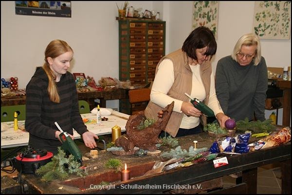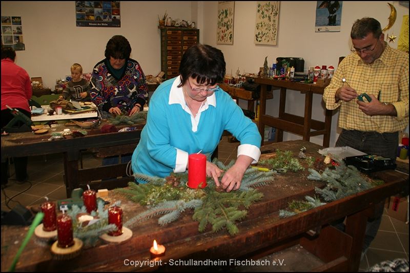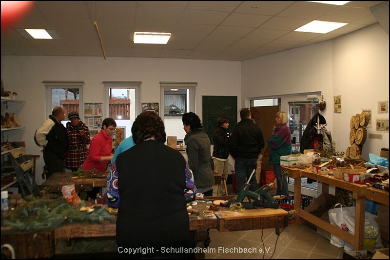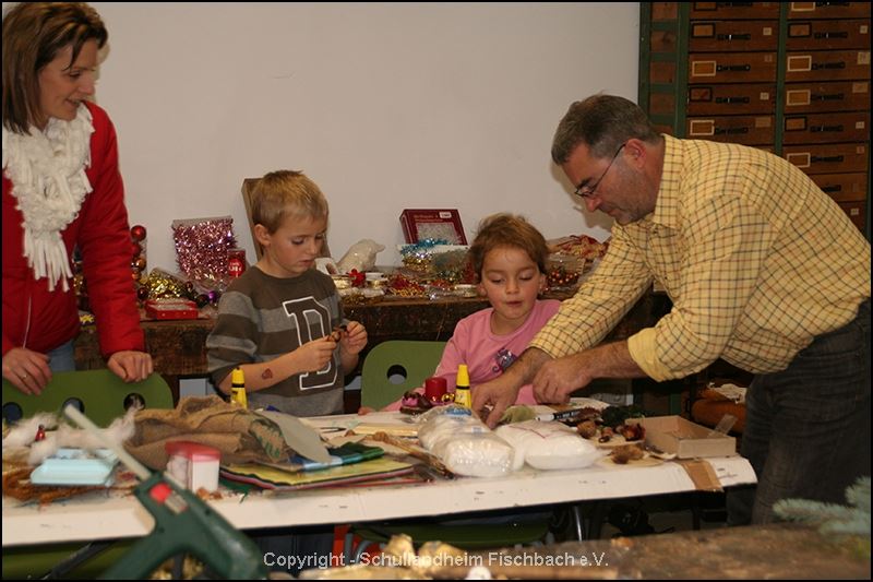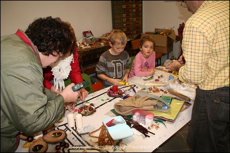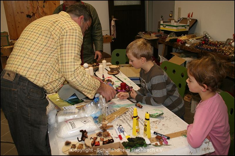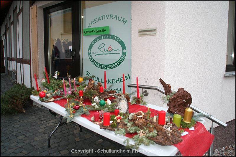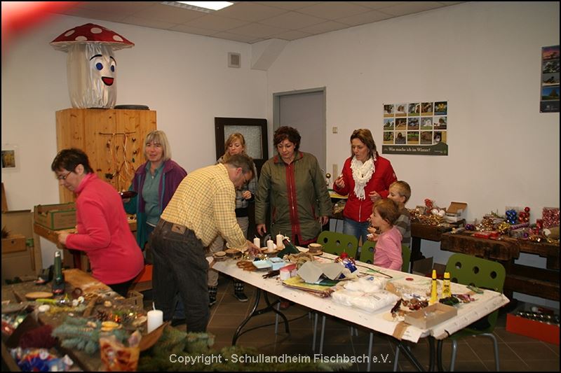 beim Adventsbasteln am 19.und 20. November wird das Schullandheim am 26. und 27.11., anlässlich des 1.Fischbacher Weihnachtmarktes in der Zeit von 14.00 bis 17.00 Uhr den Kreativraum in der Schulstraße erneut zum Basteln von Weihnachtsgestecken und mehr, zur Verfügung stellen.