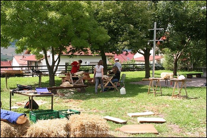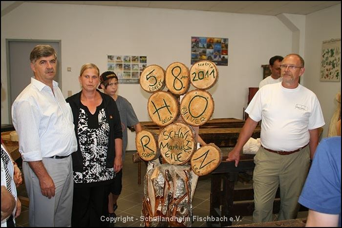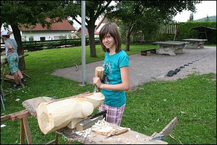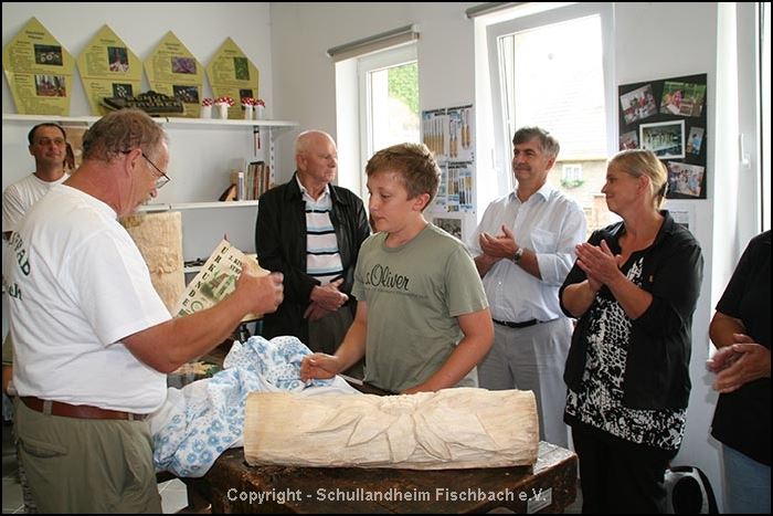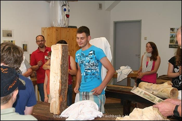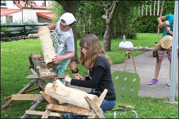 von 9-15 Jahren beteiligten sich am diesjährigen Kindersymposium während der Sommerferien. Unter Anleitung von Kerstin Genschow entstanden in der Woche wieder die unterschiedlichsten Schnitzarbeiten, die bei der Abschlussveranstaltung im Kreativraum unter den Augen vieler Zuschauer einzeln enthüllt worden. Neben dem Schnitzen gab es auch noch Freizeitangebote wie Kegeln, Kino, Schwimmbad und Lagerfeuer. Außerdem wurde mit der ersten Station der Kinderschnitzmeile begonnen. Der erste Wegweiser mit den Namen aller Teilnehmer und dem Datum beginnt am Schullandheim. Weiter soll es in Richtung Klings gehen. 2012 wird an dieser Stelle beim 4. Kindersymposium weitergearbeitet.