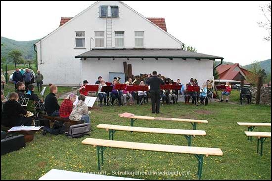 Durch die Teilnahmen der "Schule im Grünen" am Kreisfamilientag des Wartburgkreises, in Creuzburg, wurden Vertreter des Roten Kreuzes aus Eisenach auf das Schullandheim in Fischbach und seine Kinderschnitzkurse aufmerksam. Sie äußerten die Bitte, sie bei der Ausgestaltung des Eingangsbereiches Ihres Hauses mit einer Skulptur zu unterstützen.