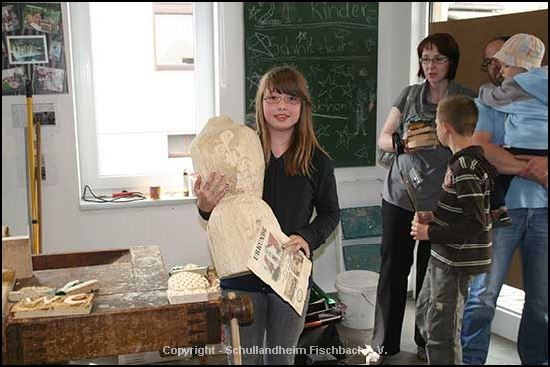 Dieser Bitte kamen die Verantwortlichen des Kurses gerne nach. Der Schüler Oliver Hößel, welcher auch das Schullandheim zum Familientag in Creuzburg vertrat, fertigte mit Unterstützung der Kursleiterin eine solche Skulptur.