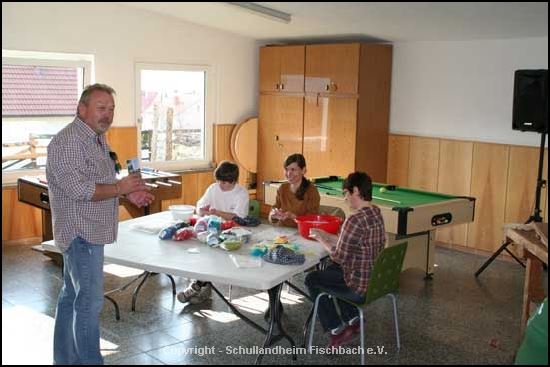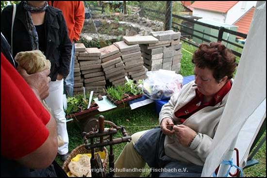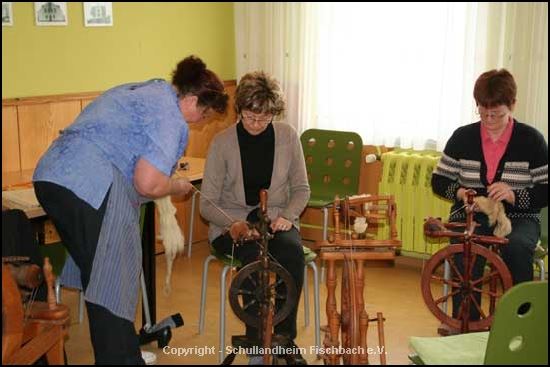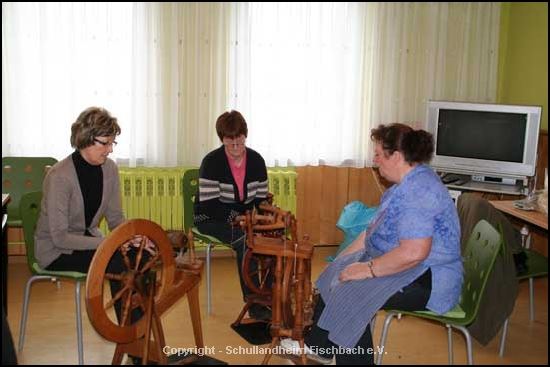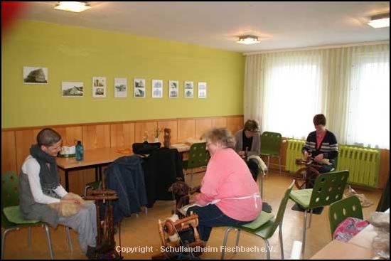 das ist das Motto im Schullandheim in Fischbach. Dabei geht es nicht nur um die Kinder, auch die Eltern- und Großelterngeneration hat alte handwerkliche Fähigkeiten und Fertigkeiten über die Jahre verlernt oder durch unsere Leistungsgesellschaft gar nicht erst gelernt. Es gibt zur Zeit nur noch wenige Menschen, die in unserer Region noch ein Spinnrad bedienen und einen Faden spinnen können, der sich stricken lässt und auch noch gut aussieht. Die Zeiten, in denen die Bauern der Rhön auf Ihre Schafe und deren Wolle angewiesen waren und aus der rauen Wolle des Rhönschafs dicke und kratzige Pullover und mehr gestrickt wurde, damit man schön warm steckte, sind lange vorbei.
