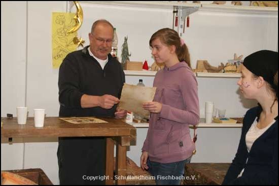 ist auch in diesem Jahr eine Ausstellung von Holzschnitzarbeiten, vornehmlich von Kindern des im Sommer stattgefundenen Schnitzsymposiums im Fischbacher Schullandheim unter der bewährten Leitung von Kerstin Genschow, zu sehen. Weitere Holzbildhauerarbeiten vergangener Jahre und Kalligraphien bereichern die Ausstellung.